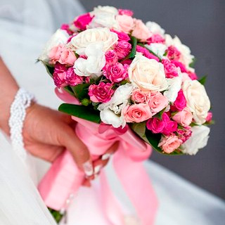 Букет Невесты, выполненный в нежных розовых тонах с добавлением бежевой розы.