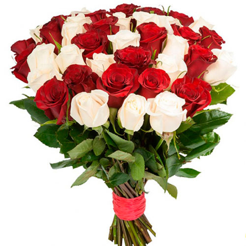 Букет, собранный из роз белого и красного цвета, станет отличным подарком для вашей Избранницы.