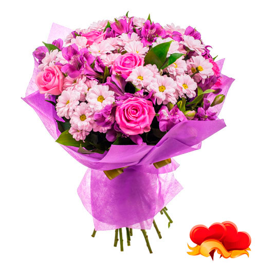 Букет, выполненный из роскошных розовых роз с добавлением альстромерий и хризантем делают его особенно изящным. Подарив такой букет Вы сможете передать Ваше самое искреннее душевное тепло и уважение. Порадуйте своих любимых!
