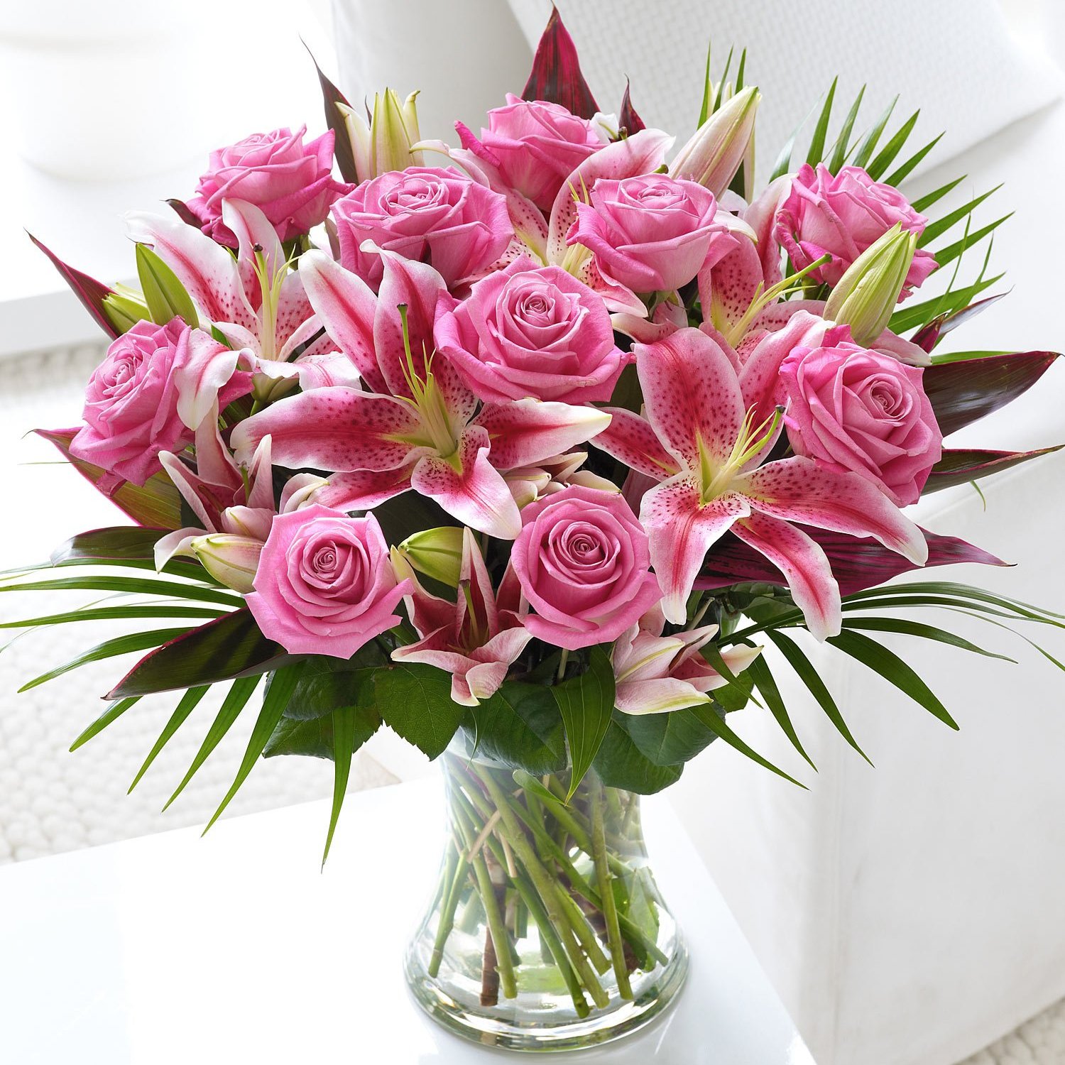 Яркий, неповторимый букет из розовой розы и цветков лилии завораживает своей нежностью и красотой. Подарите любимой море улыбок и радости!