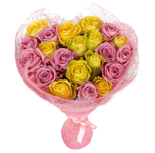 Неповторимое сочетание розовой и желтой розы в этом букете делает его особенно привлекательным. Такой очаровательный букет обязательно порадует Вашего любимого человека!