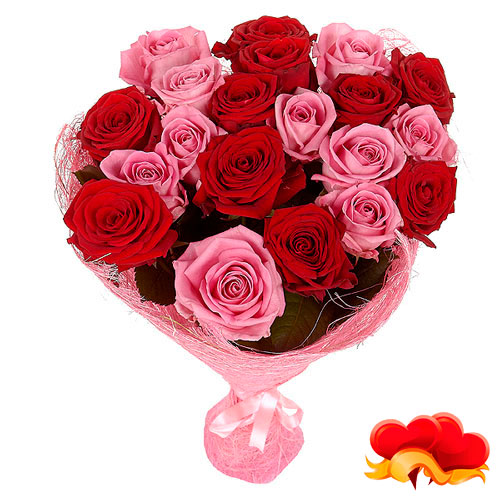 Яркий и в то же время романтичный букет, собранный из алых роз с добавлением розовых роз станет замечательным подарокм по любому поводу, подарите частичку своего тепла своему близкому человеку!